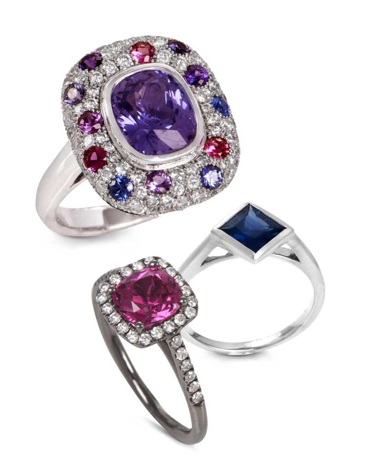 “Each unique stone comes as a story needing to be told – its color, weight, form and shape – all need to be considered…Rings, pins, pendants, bracelets, earrings – her design creations are timeless”