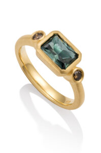 Part of Diana’s collection of stacking rings, this ring features a 1.4ct forest green Montana sapphire deep as the alpine woodlands of the “big sky” state, flanked by chocolate diamonds and set in 18kt yellow gold. Pair it with rings you already have or add one of Diana’s hammered stacking rings to create a set…