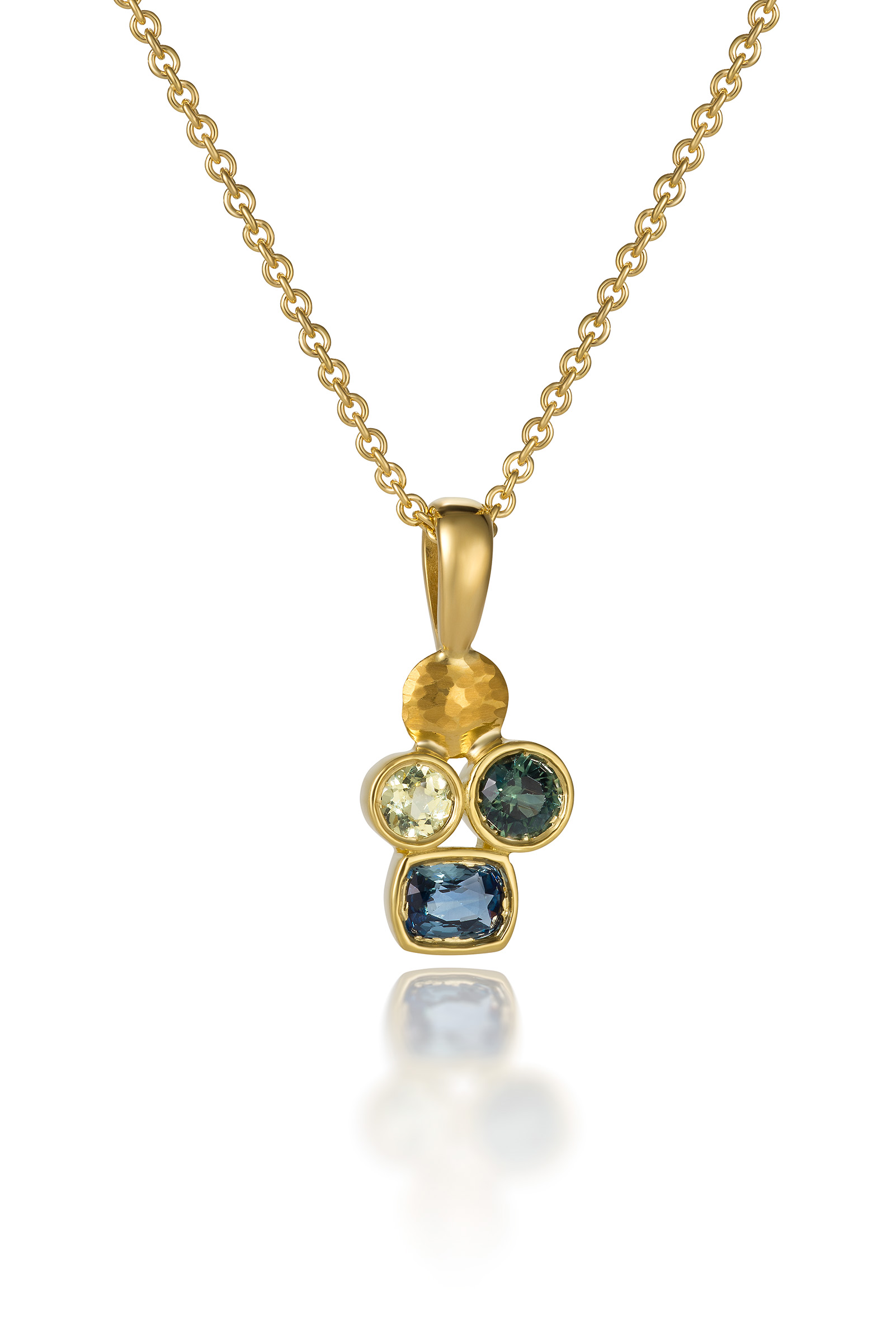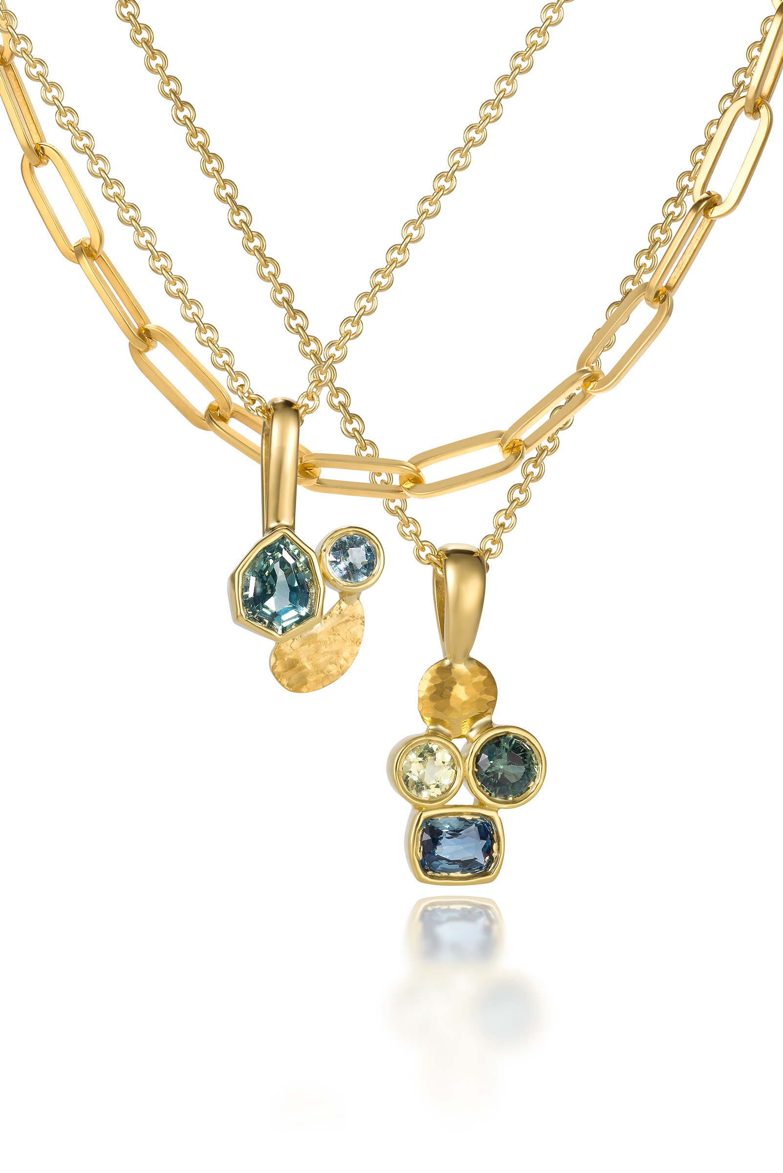 Diana’s new MiniSeries offers a fresh take on gorgeous colored gemstones set in small, playful clusters. Here you can see shades of the Mediterranean in the teal, green and yellow sapphire cluster. This pieces nests perfectly on its own or plays nicely with your treasures.